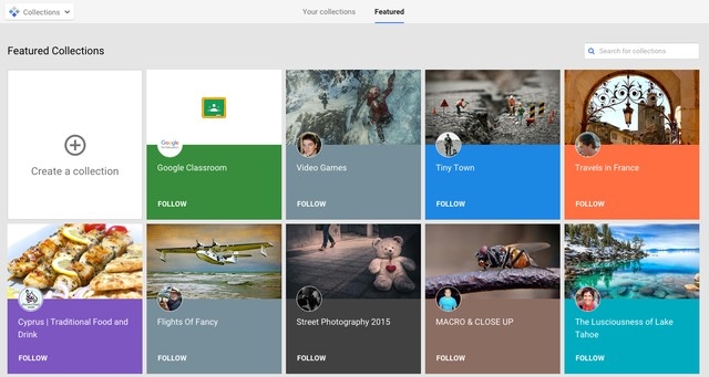 "Collections cho bạn được trải nghiệm chính bản thân mình trong những nội dung liên quan đến các chủ đề như lướt sóng hay nghệ thuật chụp ảnh tilt-shift. Communities cho phép những nhóm người có cùng sở thích tham gia và tìm hiểu sâu sắc về mọi vấn đề từ Game of Thrones cho tới Vẽ (Painting)". - quản lý sản phẩm Luke Wroblewski viết trên blog của Google.